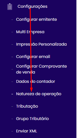 - Caminho: menu lateral ➜ Configurações ➜ Naturezas de Operação