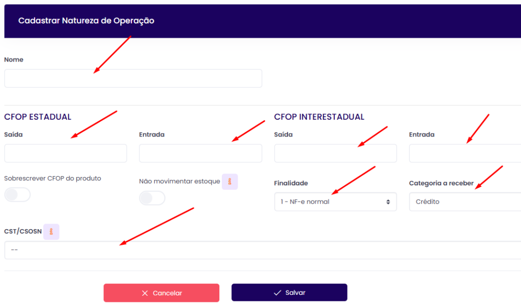 - FINALIZADE: Defina finalizade da natureza de operação (NF-e venda, Devolução, Complementar, Ajuste)