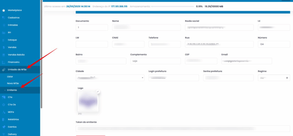 Preencha todos os campos solicitados com as informações fiscais e cadastrais do seu emitente, como: