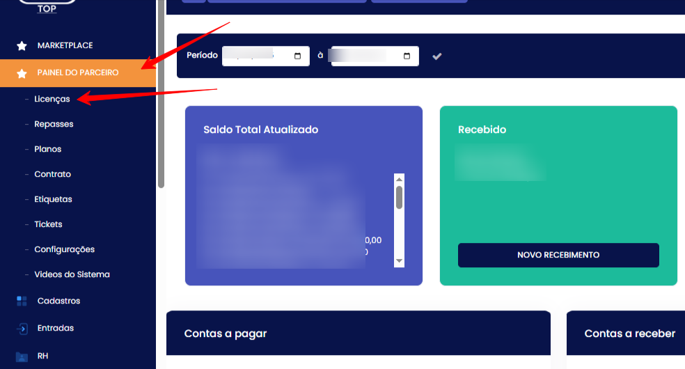 - Caminho: Painel do parceiro ➜ Licenças