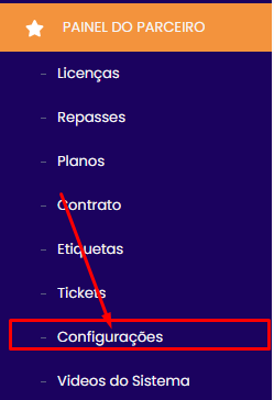 - Caminho: menu lateral ➜ Painel do Parceiro ➜ Configurações