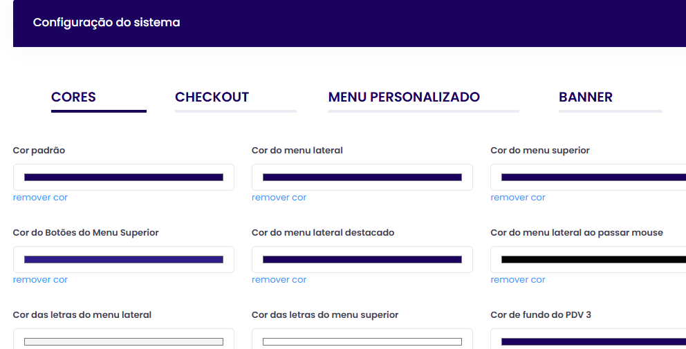 ⚠️ Atenção.: Para o PDV, também há opções específicas de cores e personalização visual.