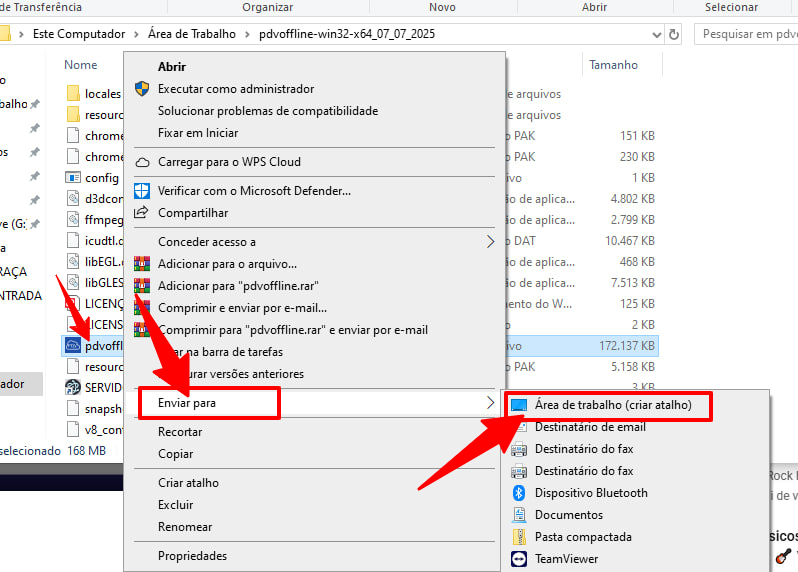 - Clique com o botão direito e selecione “Enviar para > Área de Trabalho (Criar Atalho)”