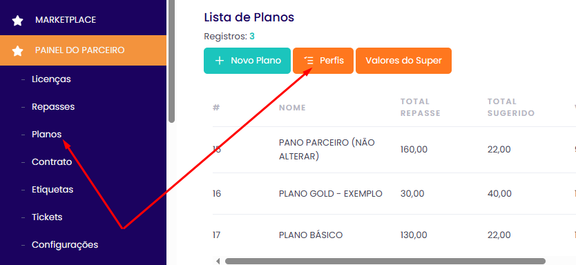- Acesse: Painel do Parceiro ➜ Planos ➜ Perfis