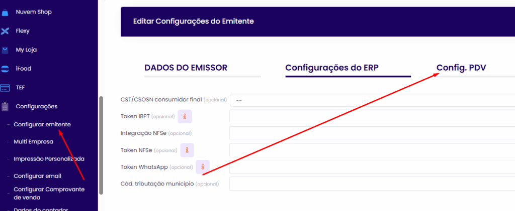 - Para isso, acesse: Configurações ➜ Configurar Emitente ➜ Config. PDV