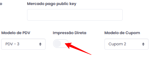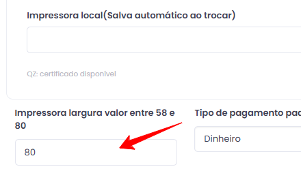 Logo abaixo, defina o tipo de impressora: 58mm ou 80mm.