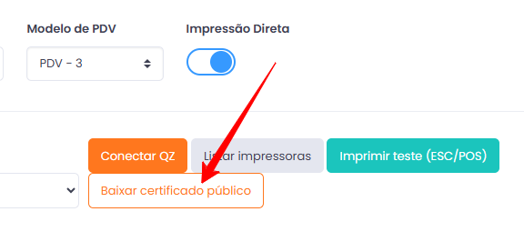 - 2.4 Depois, baixe o certificado público e salve-o dentro do QZ Tray .