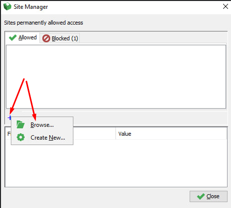 - 3.3 Para adicionar o certificado, clica no + ➜ Browse como sinalizado na imagem abaixo e busque o certificado que baixou em seu computador.